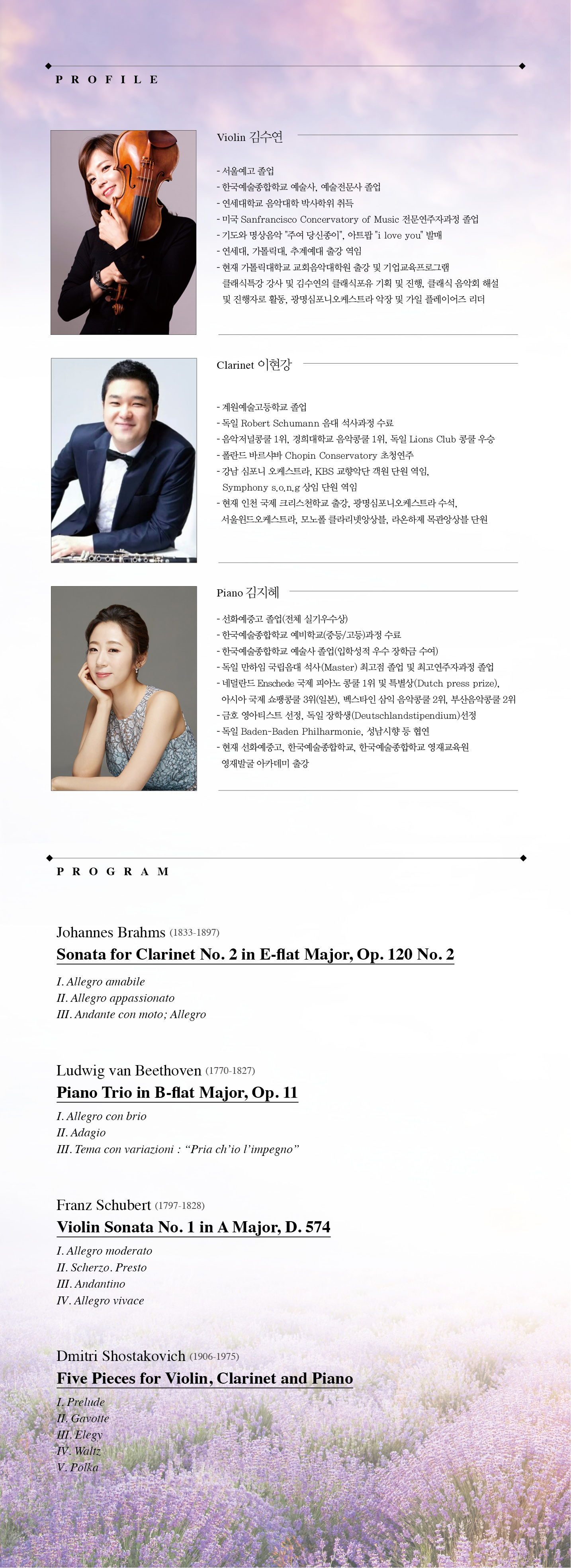 Violin 김수연, Clarinet 이현강, Piano 김지혜
