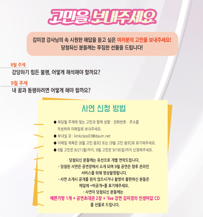 쾌적한 공연장을 위해 공연장 내 꽃다발, 음식물 반입을 금지합니다.