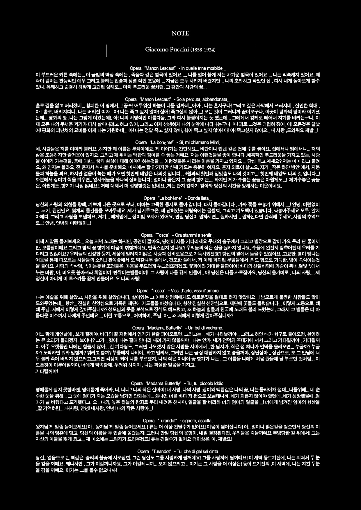Puccini 가 사랑한 오페라속 여인들