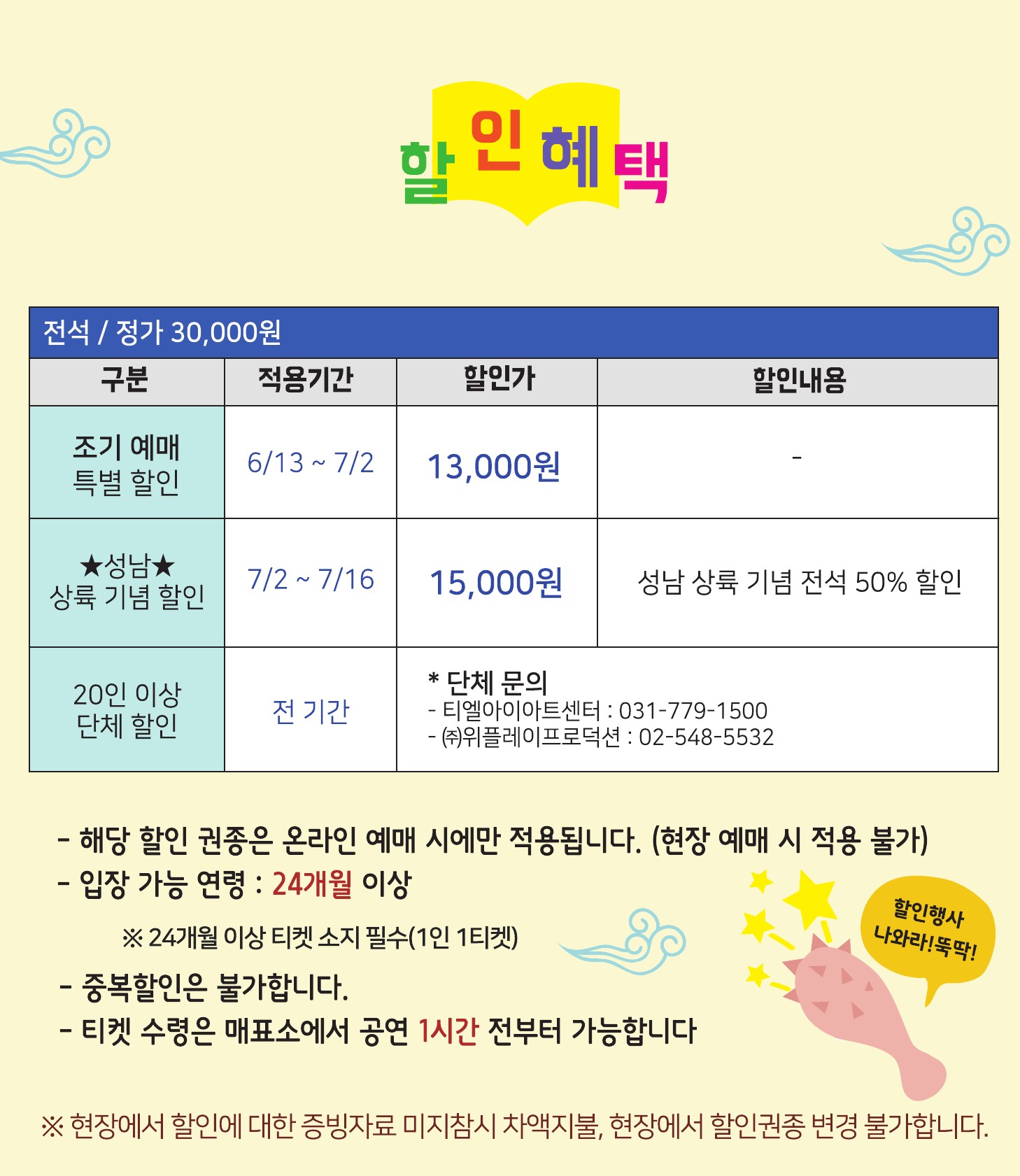 - 예매 취소, 변경은 공연 전일 5시까지 가능합니다.